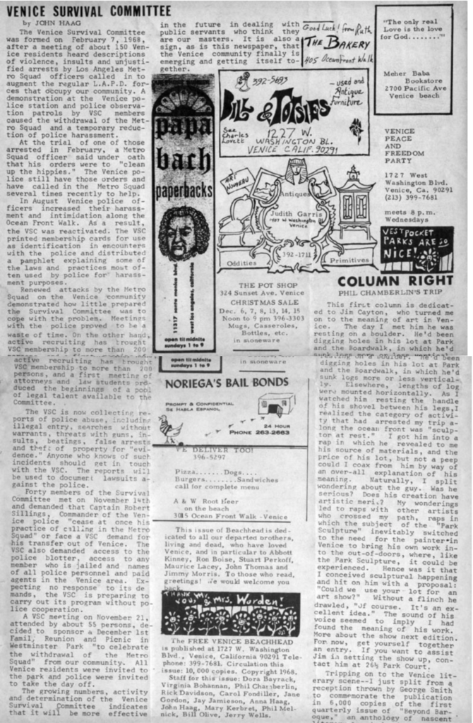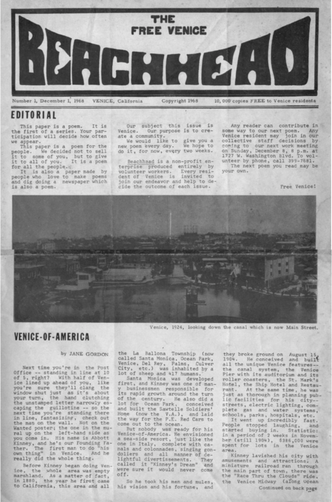 Free Venice Beachhead | December 1968Free VeniceVintage Beachhead0 Vintage Free Venice Beachhead newspaper from December 1st, 1968.